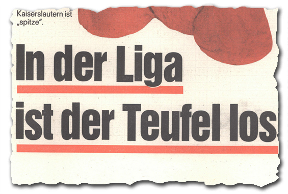 "Kicker"-Schlagzeile nach dem 7:3-Sieg des 1. FC Kaiserslautern in Uerdingen.