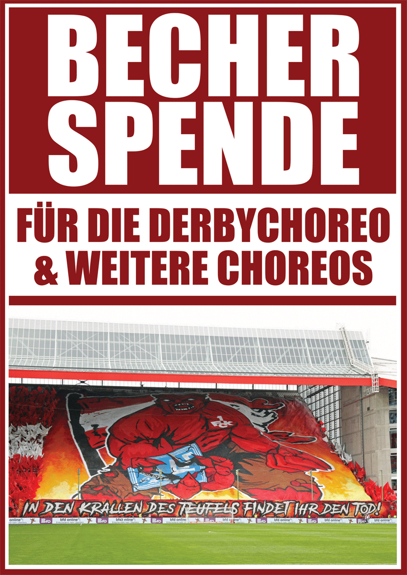 Die beteiligten Ultragruppen freuen sich über Pfandbecher und Geldspenden, welche zu hundert Prozent in zukünftige Choreographien fließen werden.