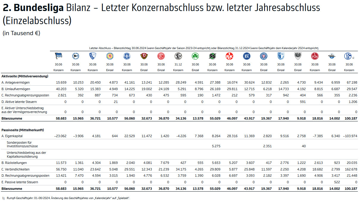 » Klubs der 2. Bundesliga 2025/26 - Bilanz zum 30.06.2024