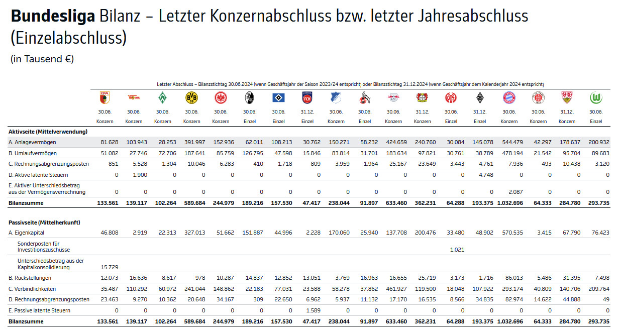 » Klubs der Bundesliga 2025/26 - Bilanz zum 30.06.2024